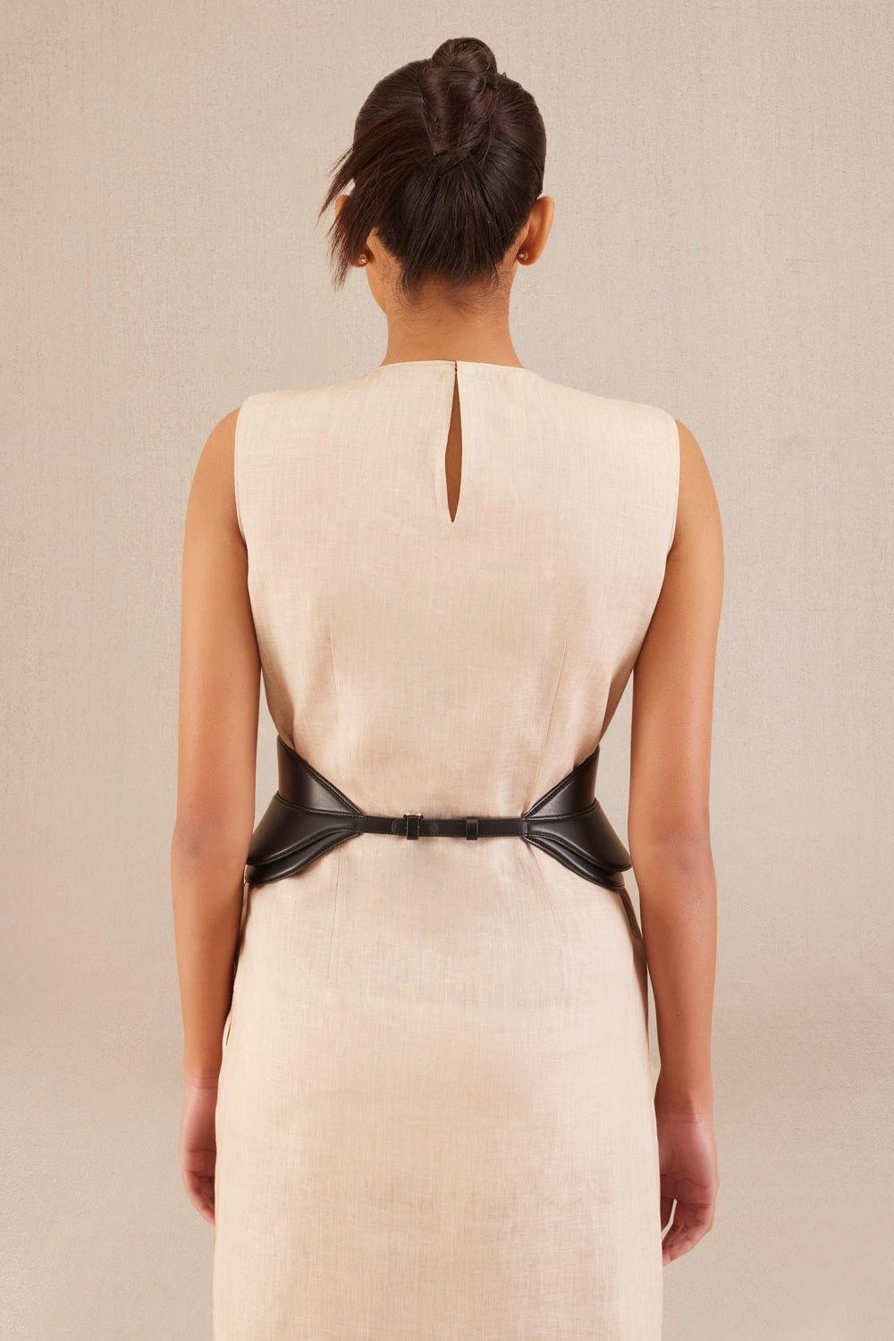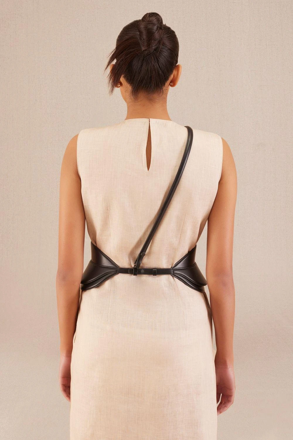 Exquisitely crafted, Riana belt in faux leather is a fashion statement. Its intricate design, adorned with dangling charms, defines elegance. Available in timeless black.