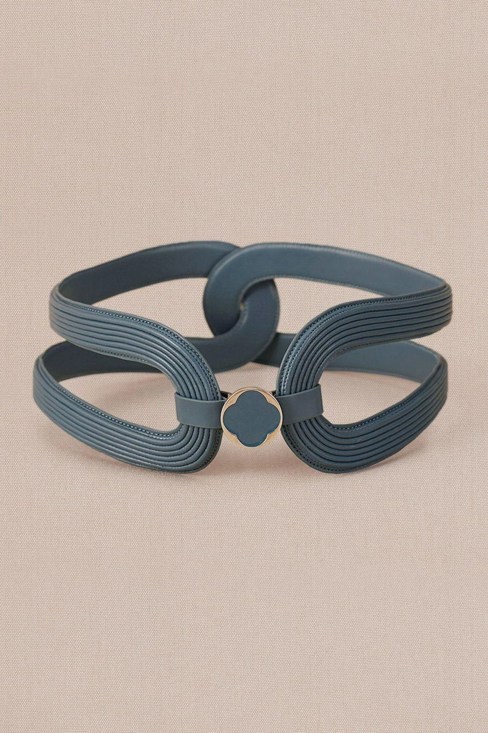 Elevate your style with the smoky grey, corded Zina belt from AMPM. Crafted in faux leather, it features an enchanting enamel buckle and intricate interlaced loop details, exuding sophistication and fashion finesse.