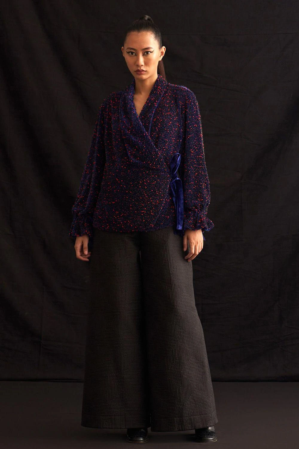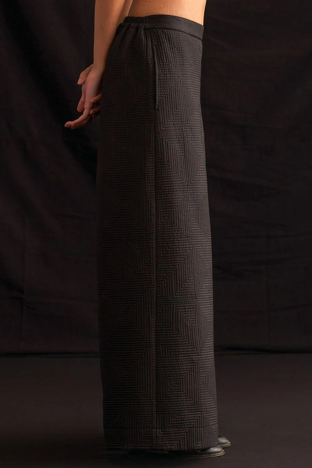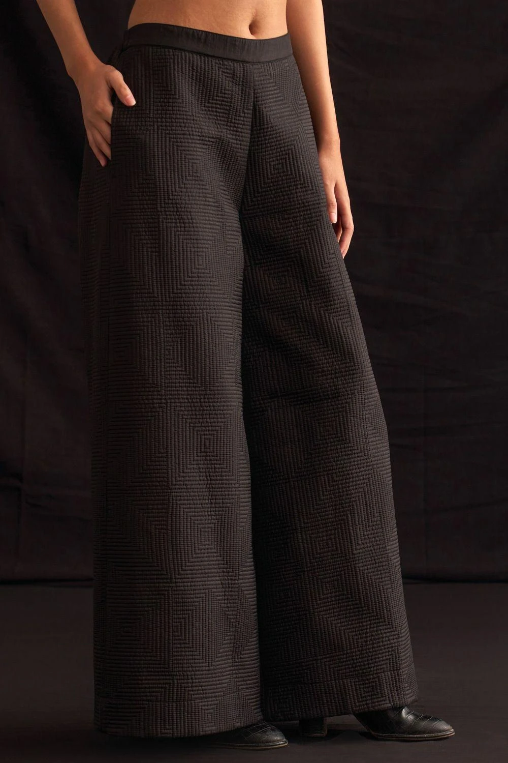 Crafted from luxurious hand-woven silk, these trousers showcase impeccable artistry through its quilted patterns. Elevate your style with this embodiment of elegance.