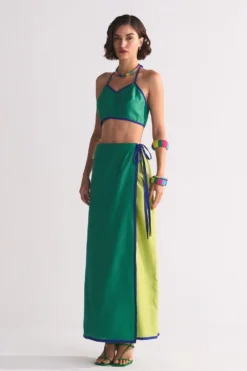 These black dhoti pants will instantly add an interesting element to any look. It is cut in organic cotton with narrow hem and cross pocket details. Style it with a crop top or tunic from the collection.
