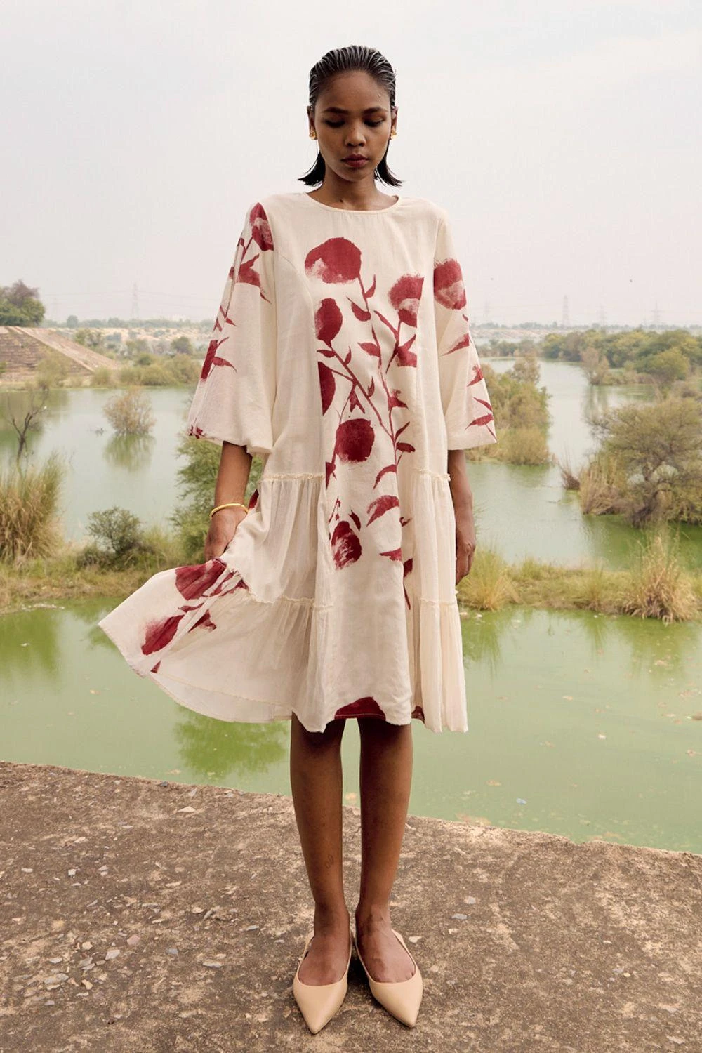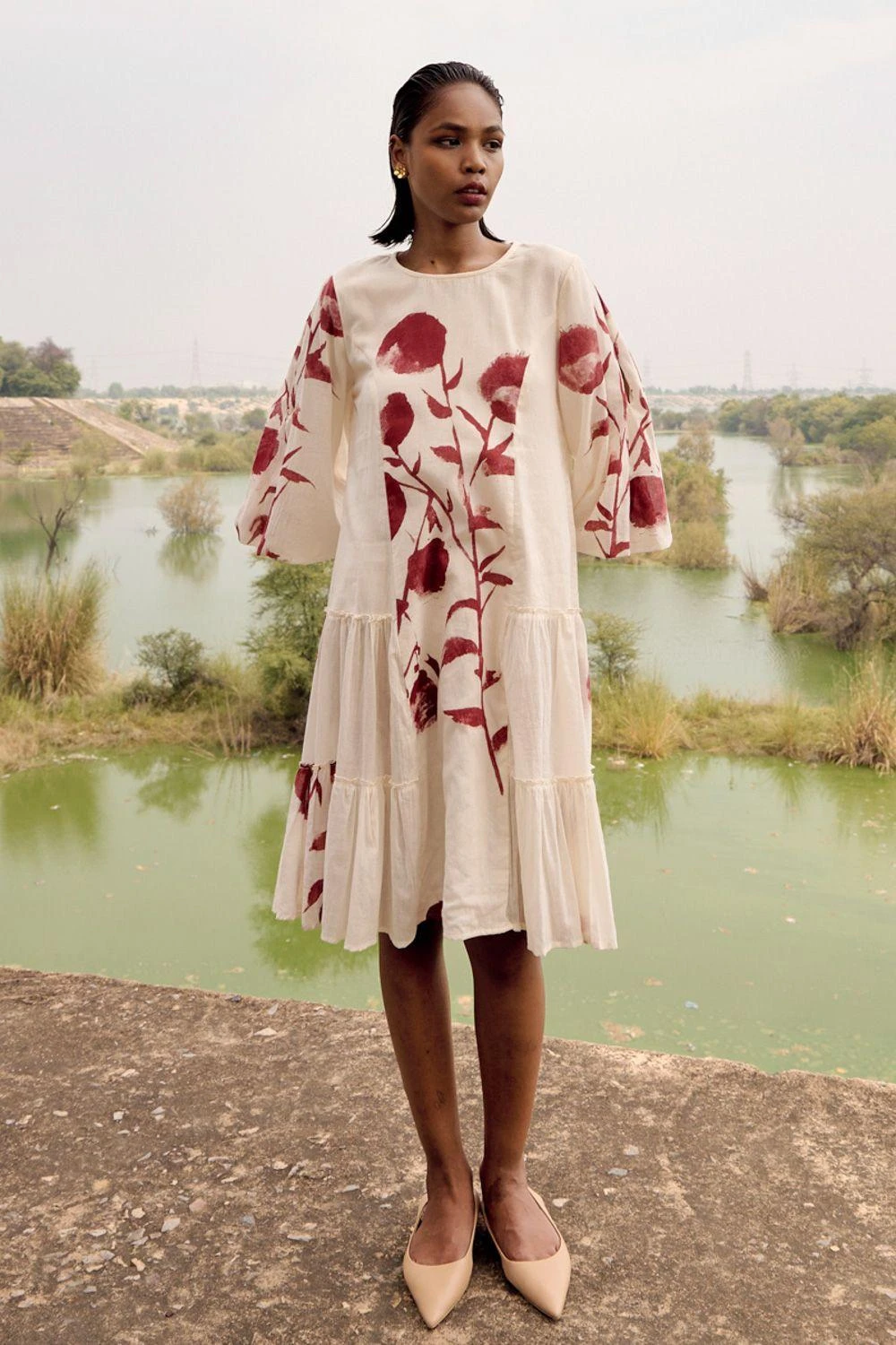 The perfect amalgamation of style & comfort, this off-white mul dress is perfect for a day out. A graceful choice that seamlessly combines comfort with style for any occasion.