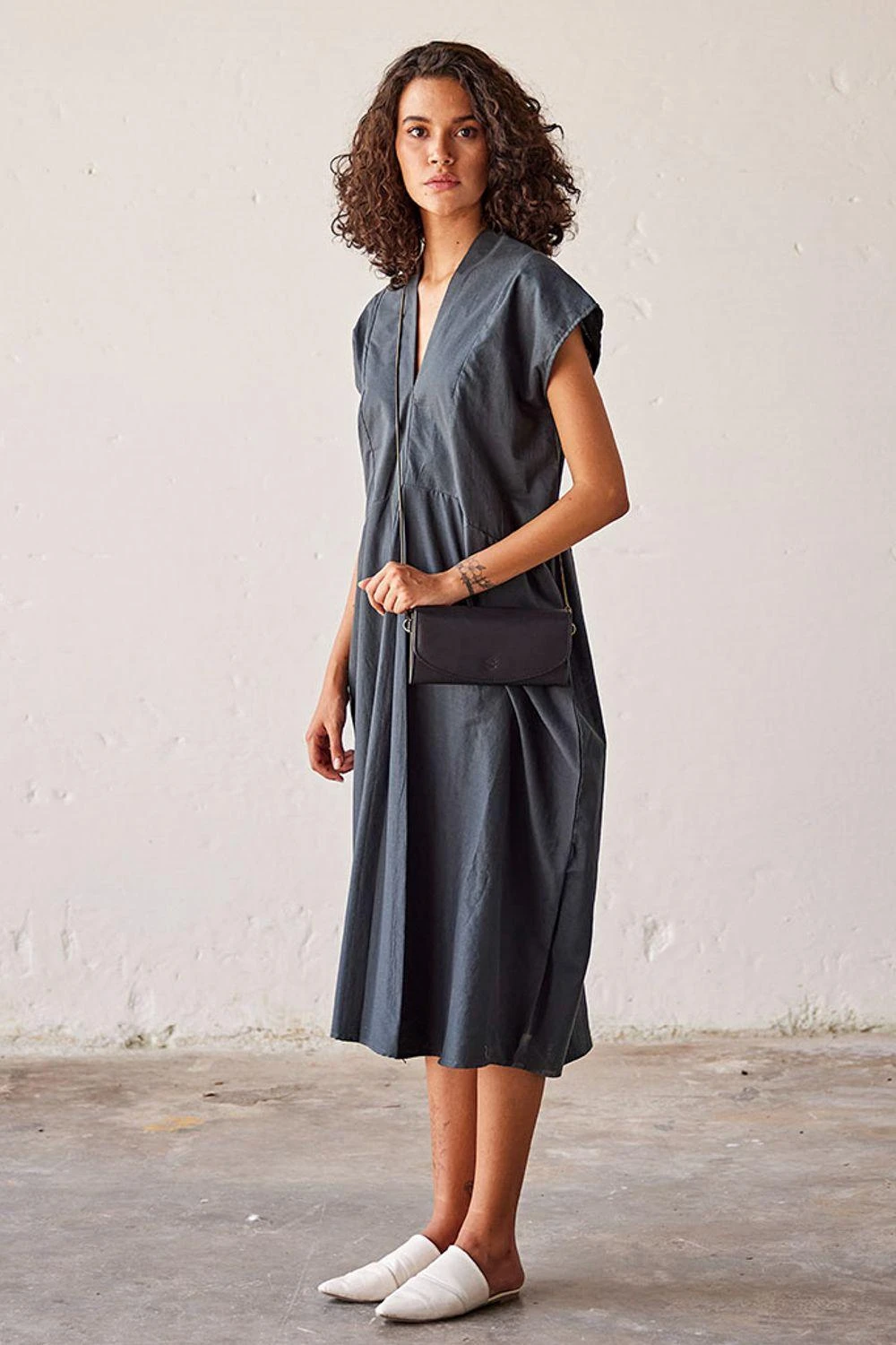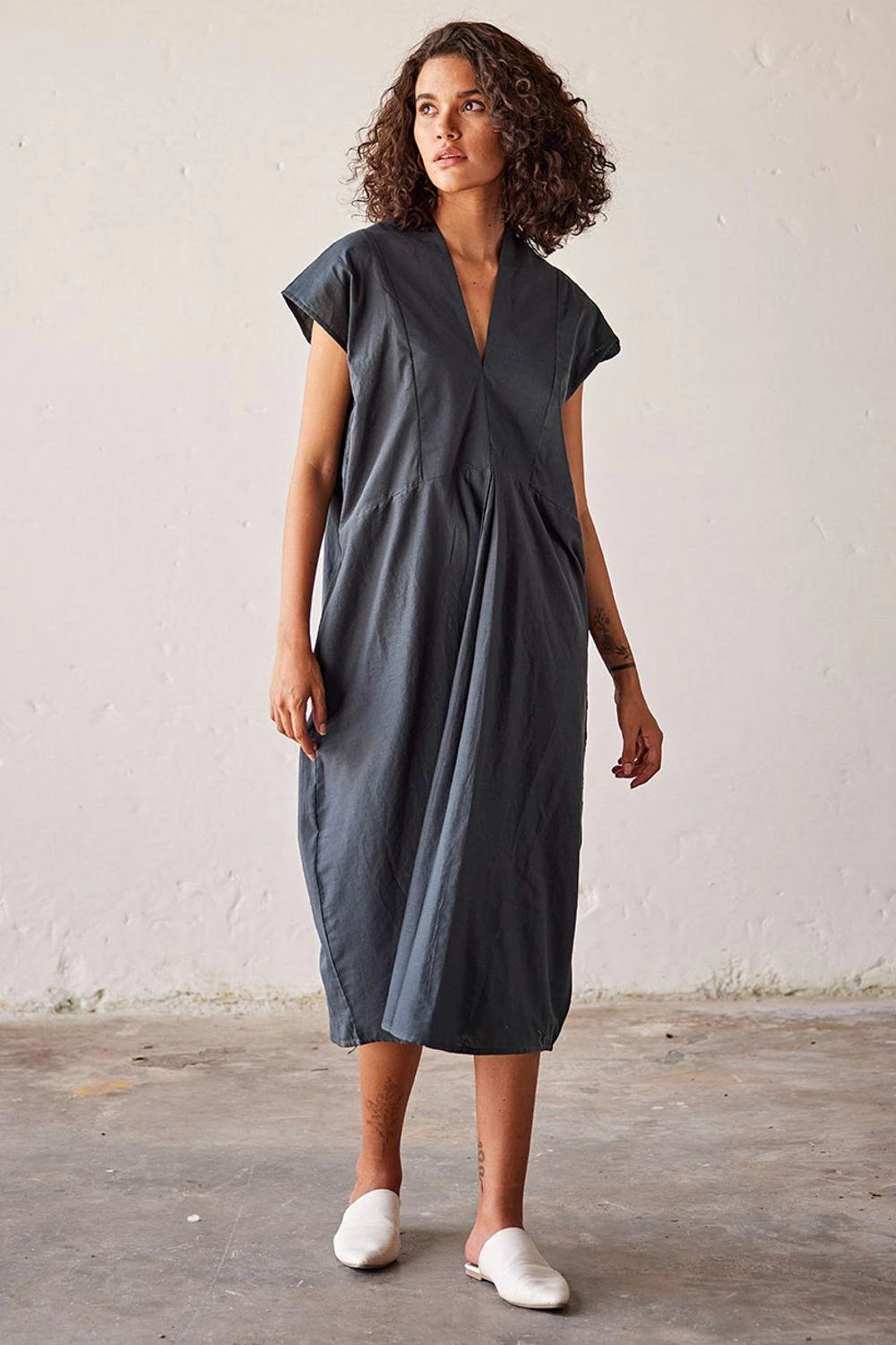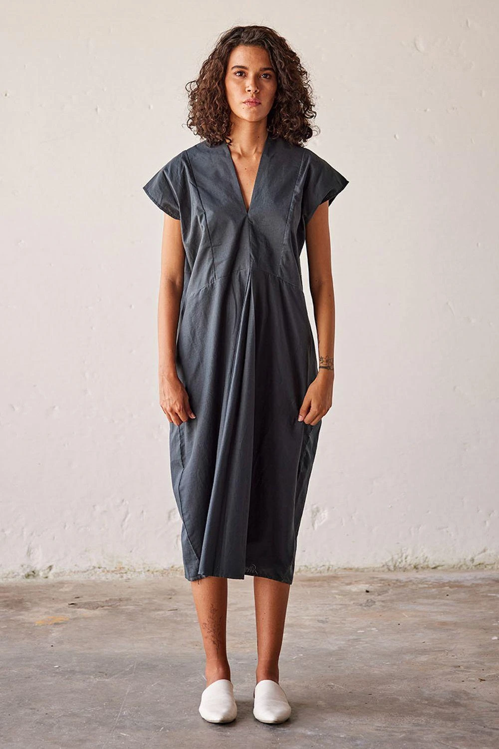 Elevate your elegance with this Sacramento green mul dress. Its V-shaped front and back neckline, along with the meticulously crafted inverted pleat at the front, redefines chic sophistication.