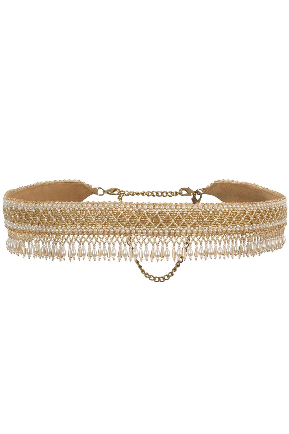 The kiah waist belt is an elegant statement piece of accessory, embellished with Japanese ivory beads, iridescent crystals & semi precious stones. It also has ornate tassels.