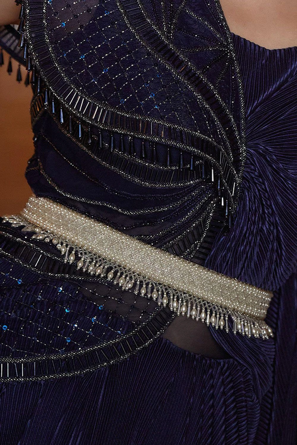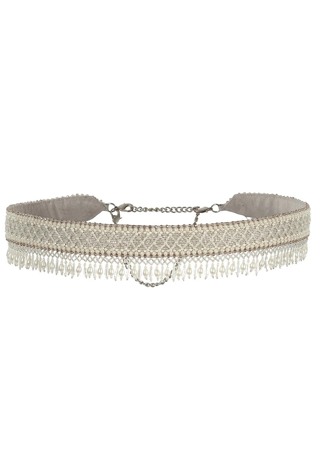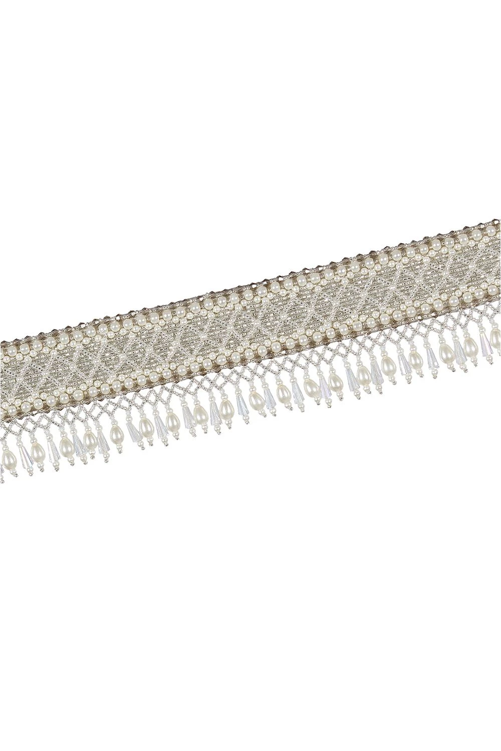 The kiah waist belt is an elegant statement piece of accessory, embellished with Japanese ivory beads, iridescent crystals & semi precious stones. It also has ornate tassels.