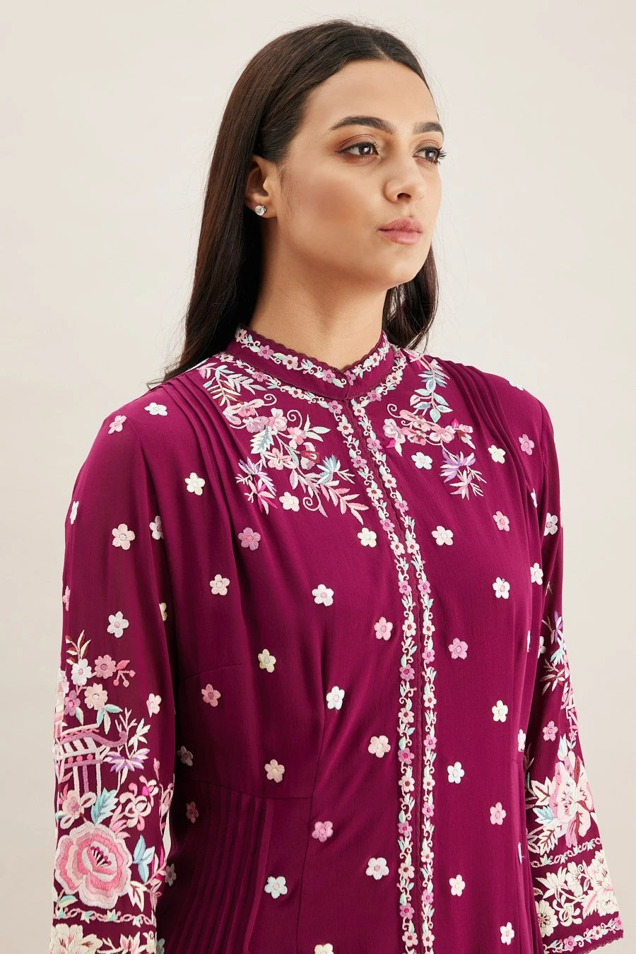 From your work desk to the brunch table & from lounging at home to catching flights, you can always count on this dress. Crafted in georgette, this dress features classic gara jaal hand embroidery with silk threads.