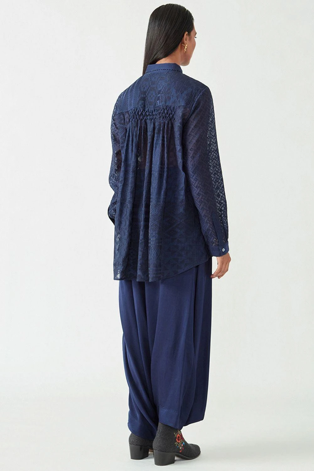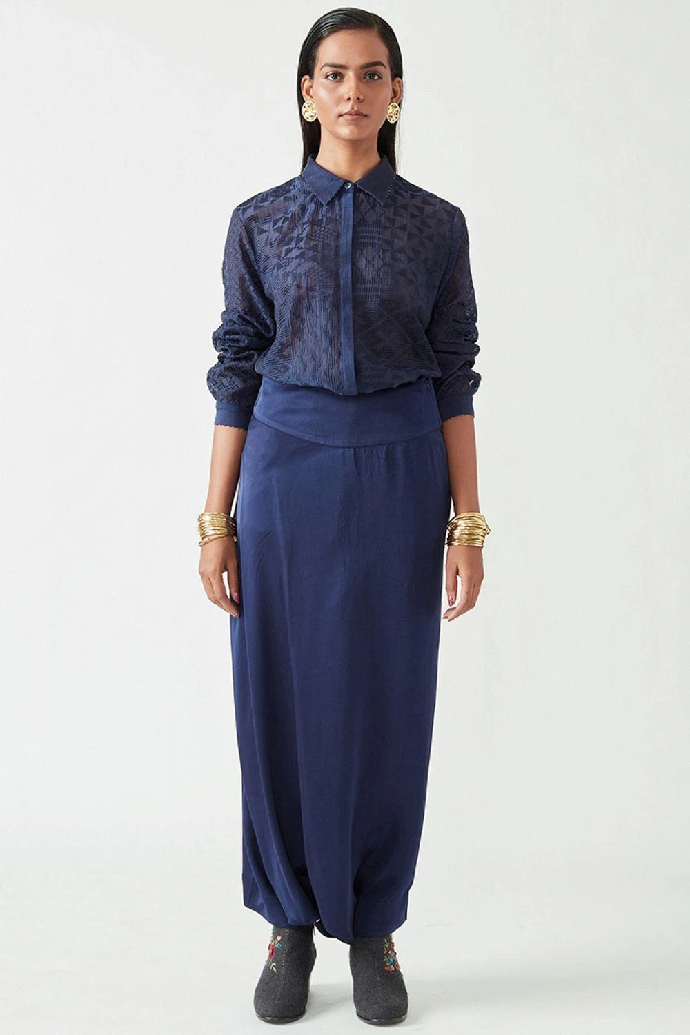 These navy blue drape pants are made in luscious satin fabric with an elasticated waistband. These elegant pants can be styled with a range of options.