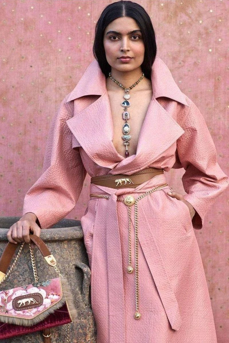 Add an essence of royalty to your looks with this wide tan leather belt. It is crafted in fine leather and accentuated with Sabyasachi’s signature Royal Tiger logo plated in 24K gold. Cinch it over a sari or gown.