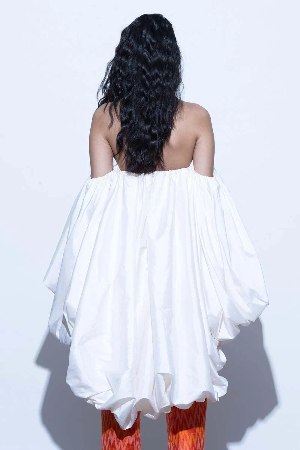 A little drama ain’t hurt nobody. This High low taffeta top embraces larger than life sleeves in a balloon silhouette. This classic white top in its extravagant form is a sure-fire winner.