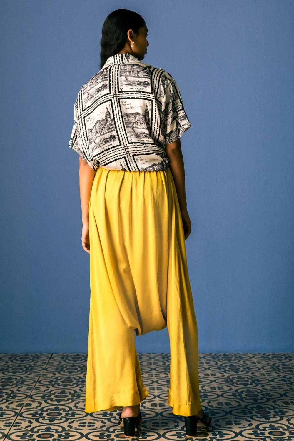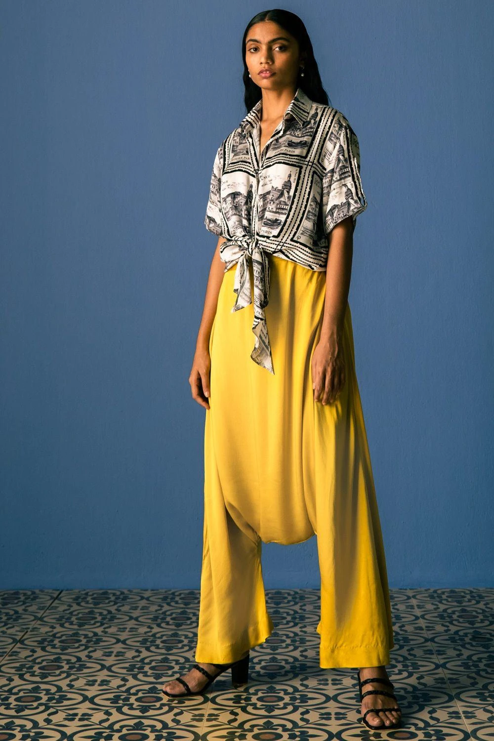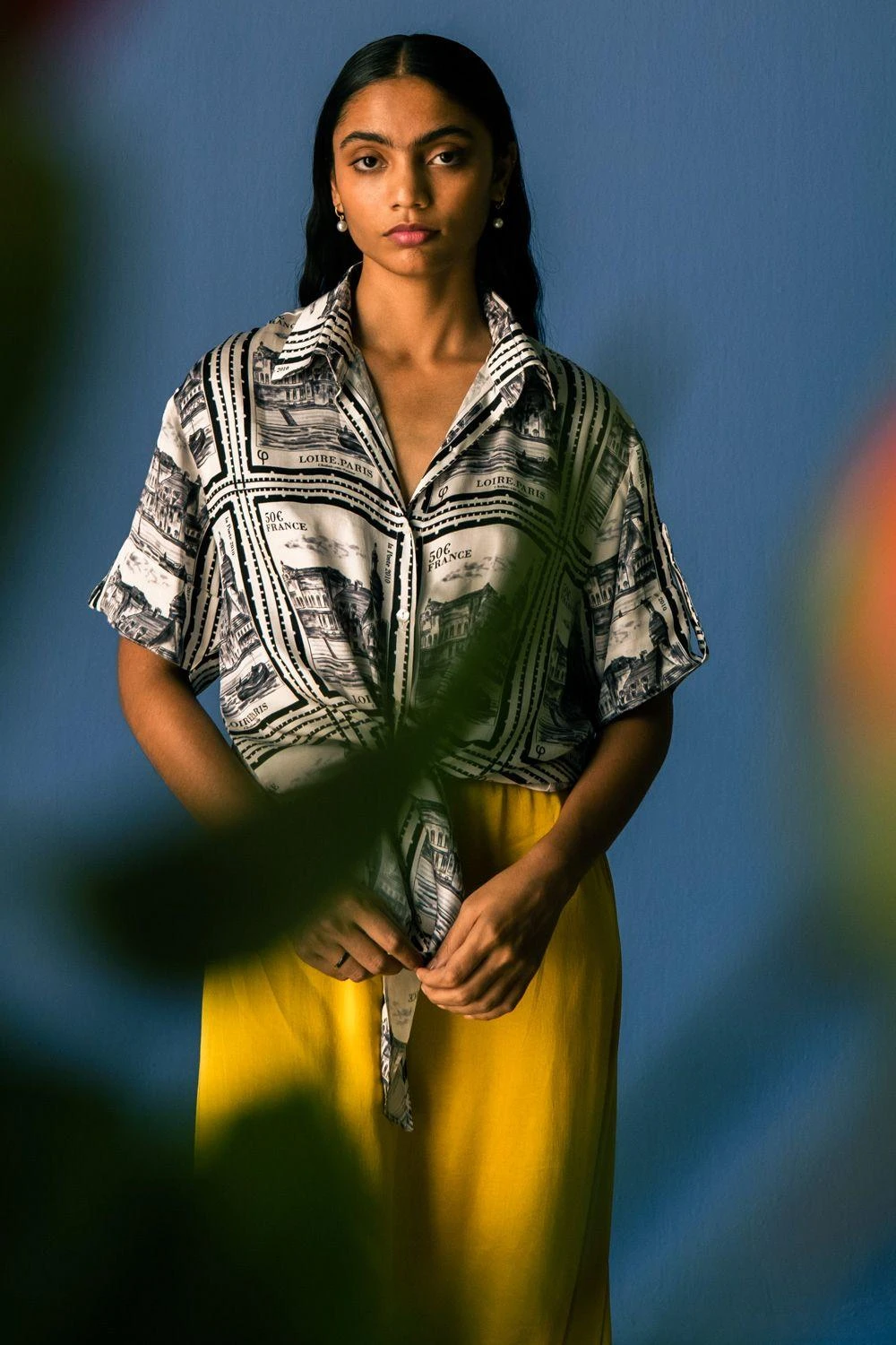 This Paris knot shirt takes the comfy chic trend to a different level. It is consciously made in vegan silk fabric with hand-drawn Paris stamp print, making it a trend setting piece. Style it with Paris pants for a co-ord look.