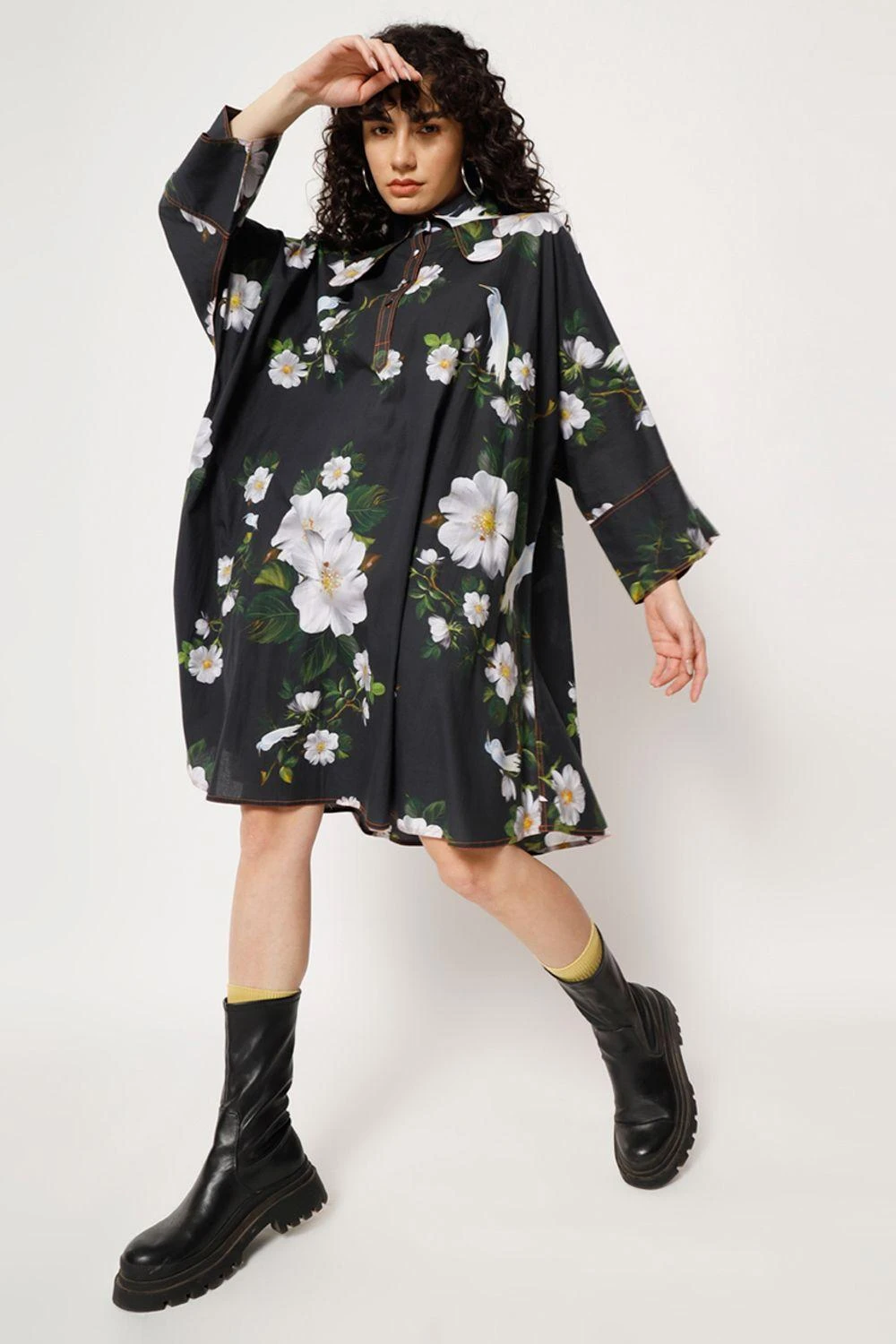 Embrace effortless elegance with this straight kaftan dress, designed for a comfortable and easy fit. The digital print features a blooming floral design, adding a touch of vibrancy to your look.