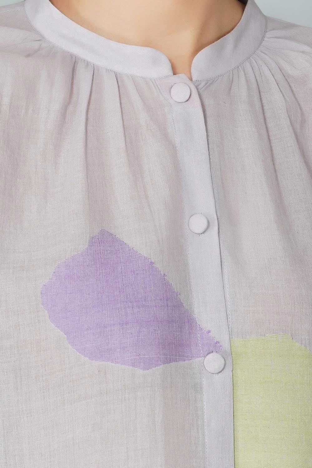A sweet & romantic pick for your everyday look. This candy floss top is woven in cotton jamdani. Its subtle palette & silhouette helps you to style it with an array of options.